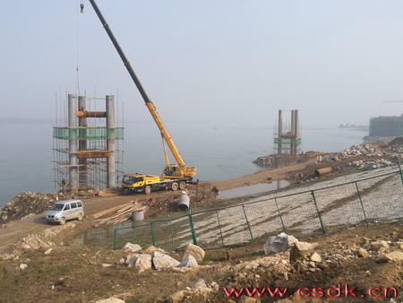 在預(yù)報(bào)最冷的冬天,湖南航務(wù)公司給了我們長沙大秦一個(gè)深情的擁抱,讓我們參與在岳陽長江邊安裝浮動(dòng)船塢定位樁。